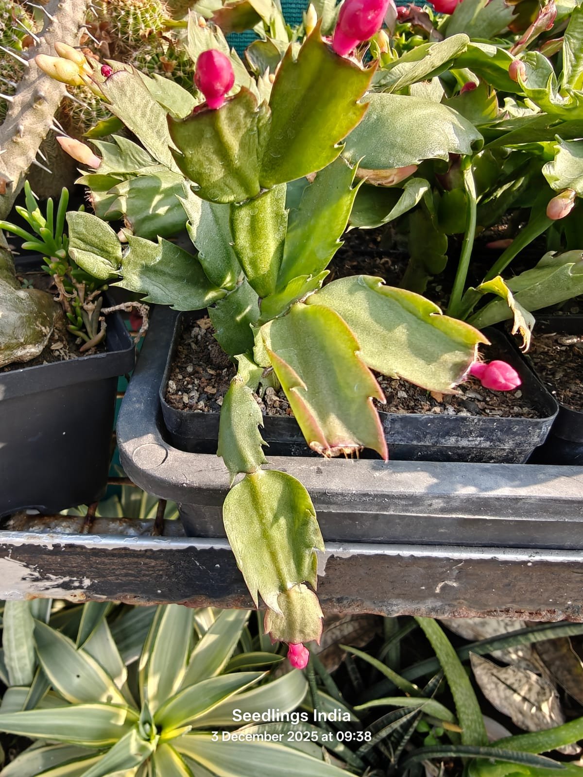 Christmas cactus Schlumbergera , a tropical epiphytic cactus, thrives with bright indirect light, moderate watering, and high humidity.​